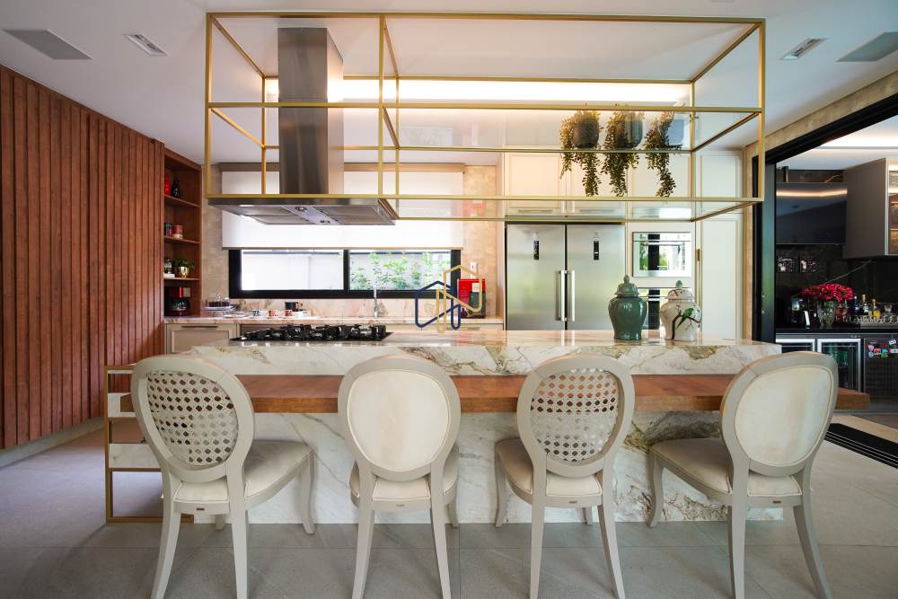 • Cozinha com ilha em mármore Calacata Nuvolato