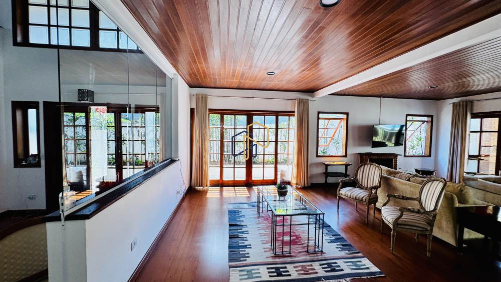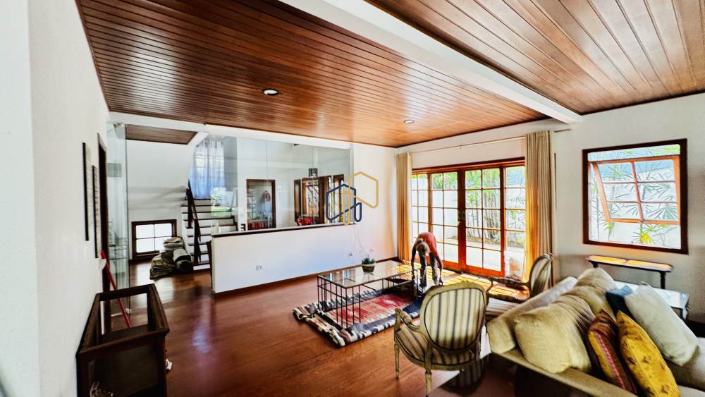A casa ainda conta com dependência de serviço completa, lavanderia, jardim interno e capacidade para até 6 veículos.