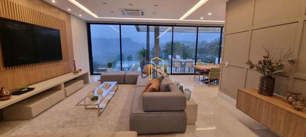 Belíssima casa com ambientes amplos e integrados, arquitetura moderna, em um dos melhores condomínios da região, dentro de uma estrutura completa de segurança patrimonial.