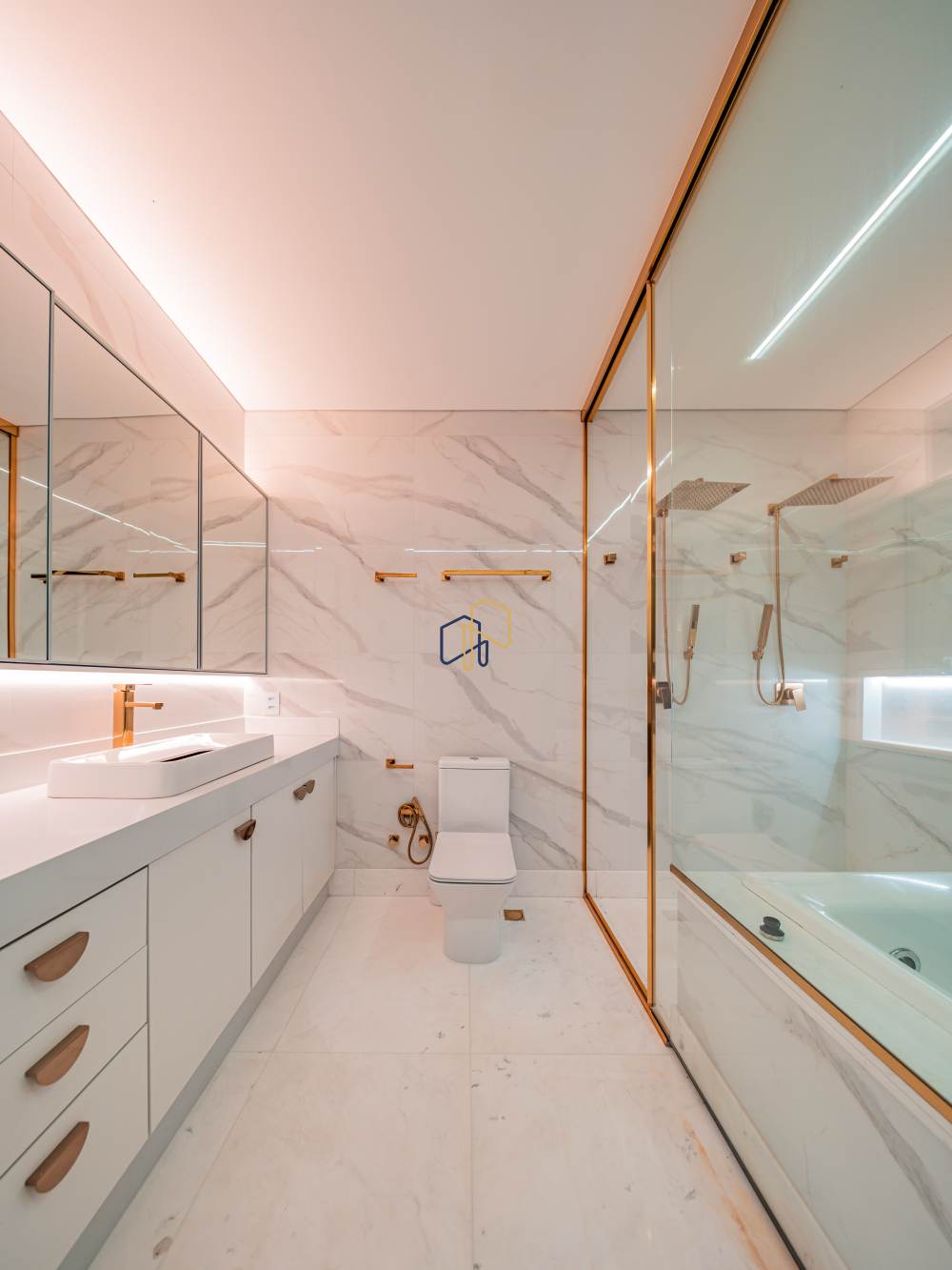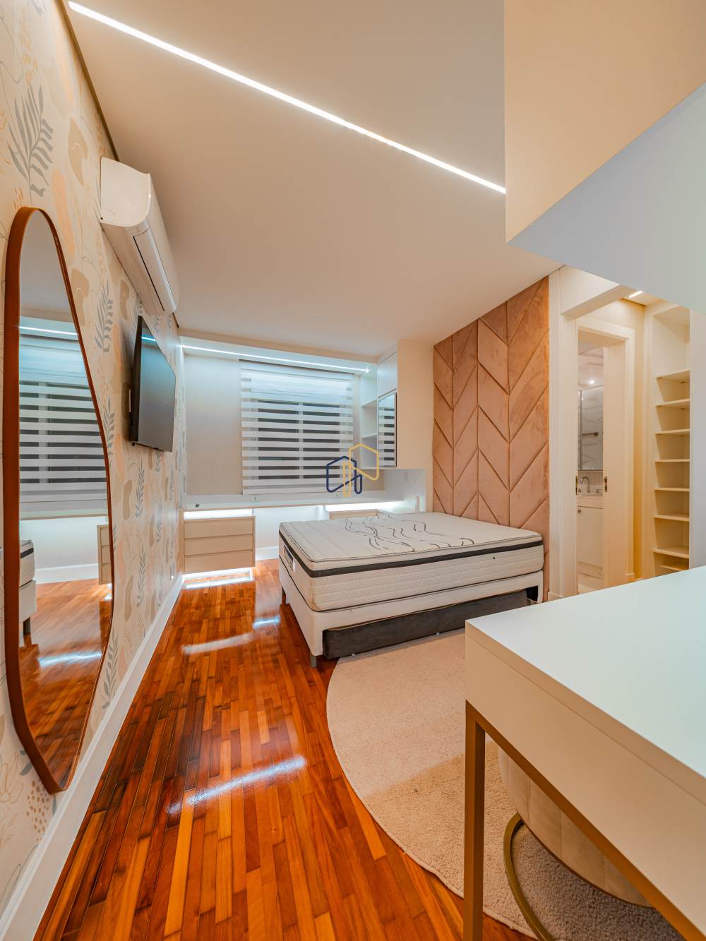 5 suítes, incluindo uma suíte master de dimensões generosas, projetada para máximo conforto e privacidade.