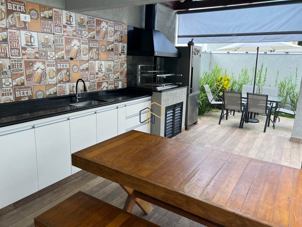 Ampla área de lazer com piscina e espaço gourmet